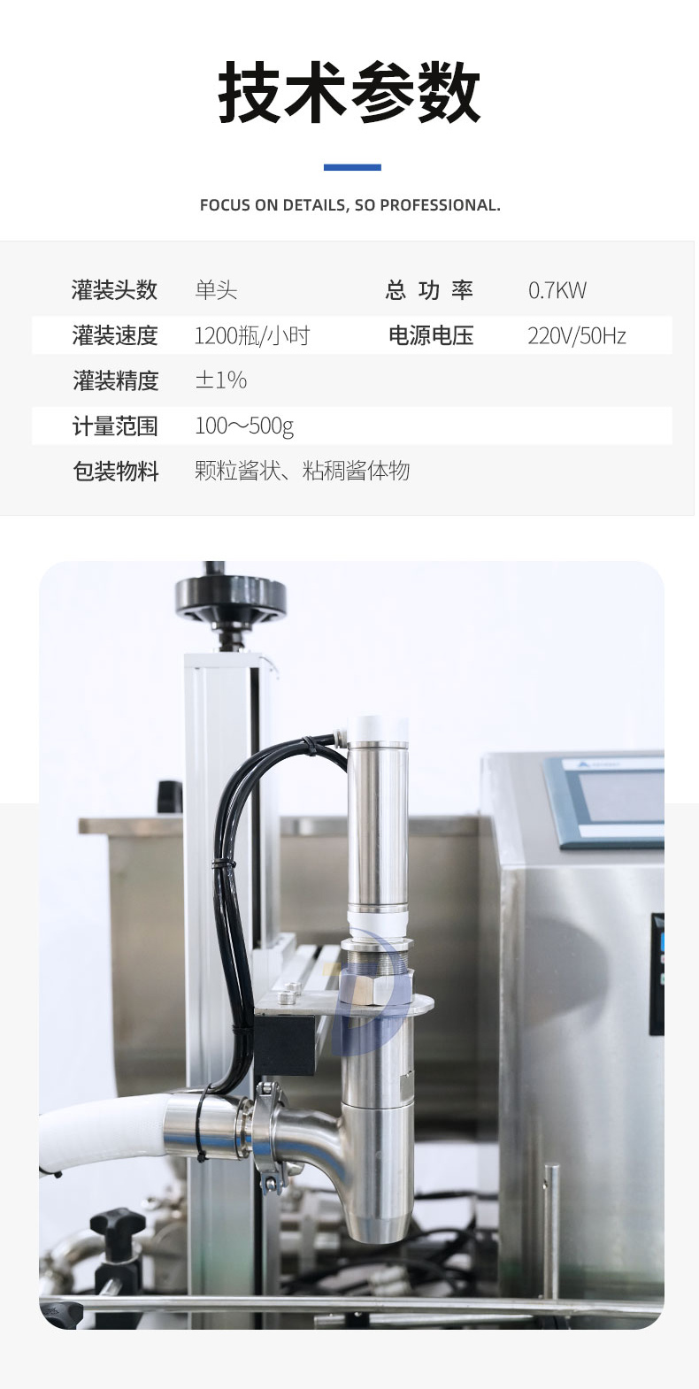 • 小型醬料灌裝生產線 包括半自動將料灌裝機 半自動真空旋蓋機以及半自動貼標機 適用于初期辦廠研發設計。灌裝機用于垃圾愛哦將、拌面醬、豆瓣醬、大塊肉醬等物料的定量灌裝,變...