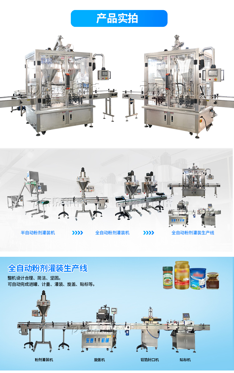 自動定量粉劑灌裝機該機是一種經濟型粉劑和小顆粒自動灌裝機,可以完成瓶的自動定位,灌裝和計量。它由一個灌裝頭,一條連接帶和—個定位裝置組成?;虿竭M)電機,PLC和蝕摸屏控制,操作簡便,穩定性高。它可以與開瓶器,封蓋機和貼標機結合形成一祭完整的灌裝線。適用于包裝粉末和小顆粒物料,例如粉末,小顆粒,獸藥,葡萄糖,調味品,體飲料,碳粉,滑石粉,農藥等。