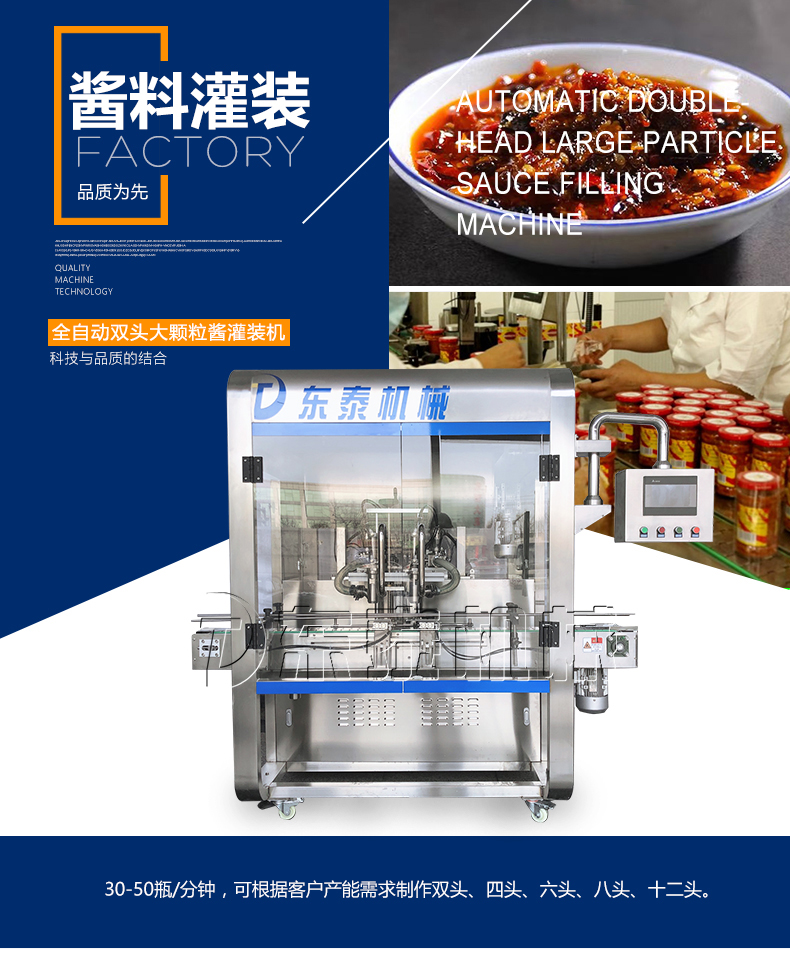 醬料行業市場日趨龐大,有非常的工作效率,來滿足客戶需求就顯的十分重要了,我們公司便能給您帶來這種的幫助,這款辣椒醬灌裝機灌裝機身為公司新生產制造的灌裝機在行業市場上發揮了重要的作用,辣椒醬灌裝機是集光,機,電,氣于一體,選用活塞式定量原理,灌裝精確度高,使用比較簡單,維護非常方便,設備主要材質:選用SUS3