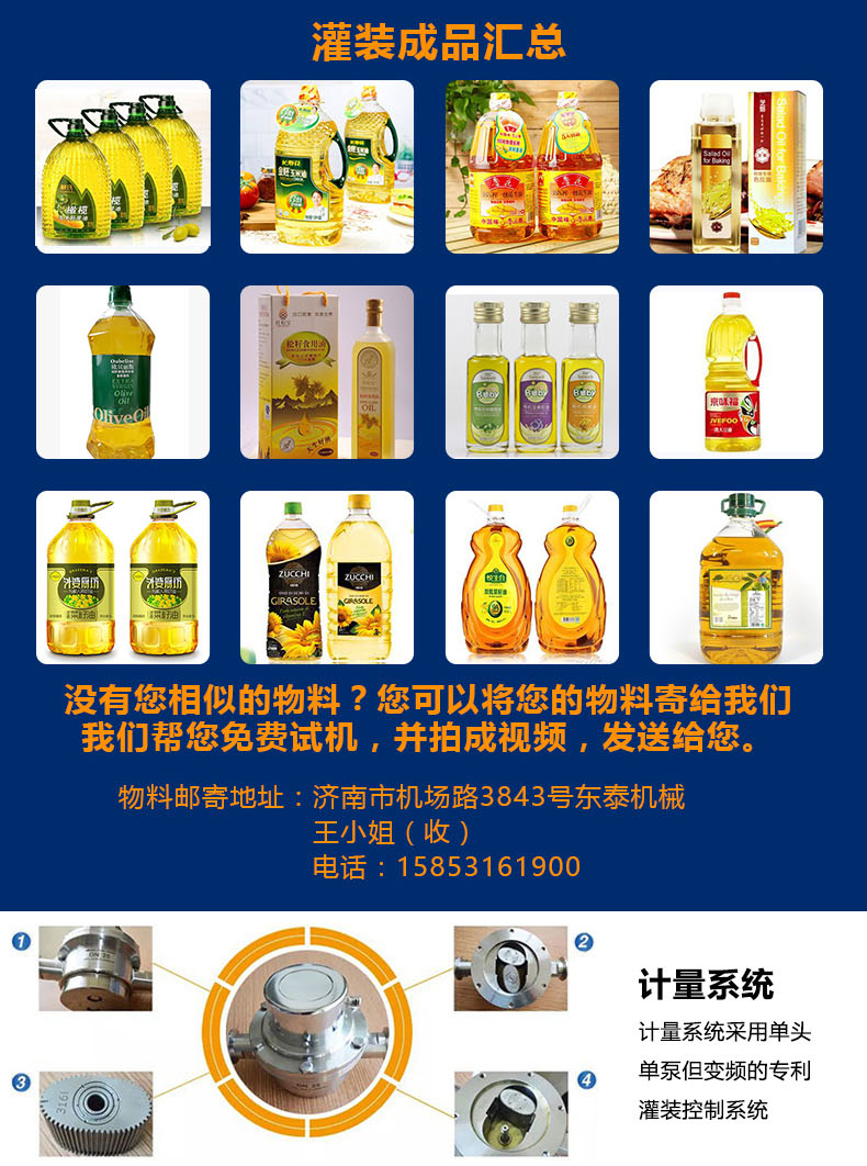 適用于各種規(guī)格(1-5升)的南瓜籽油、榛子油、牡丹籽油、芝麻油、核桃油、山茶油、亞麻籽油、棉籽油、橄欖油、大豆油、玉米油、菜籽油等食用油灌裝。
